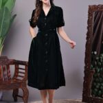 Be the first to review “Women’s Black Velvet Solid Printed Shirt Midi Dress with Belt”