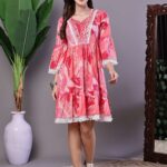 Be the first to review “Wome’s Pink Floral Printed Cotton A-Line Dress with Embroidered Yoke Midi Dresses”